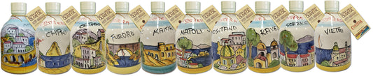 Monocultivar Sorrento Lemon Oil in 8.4fl.oz (250ml) Hand Crafted Ceramic Bottle. Made with cold pressed Sorrento's Lemon Fruit Flavor. SORRENTO LEMON