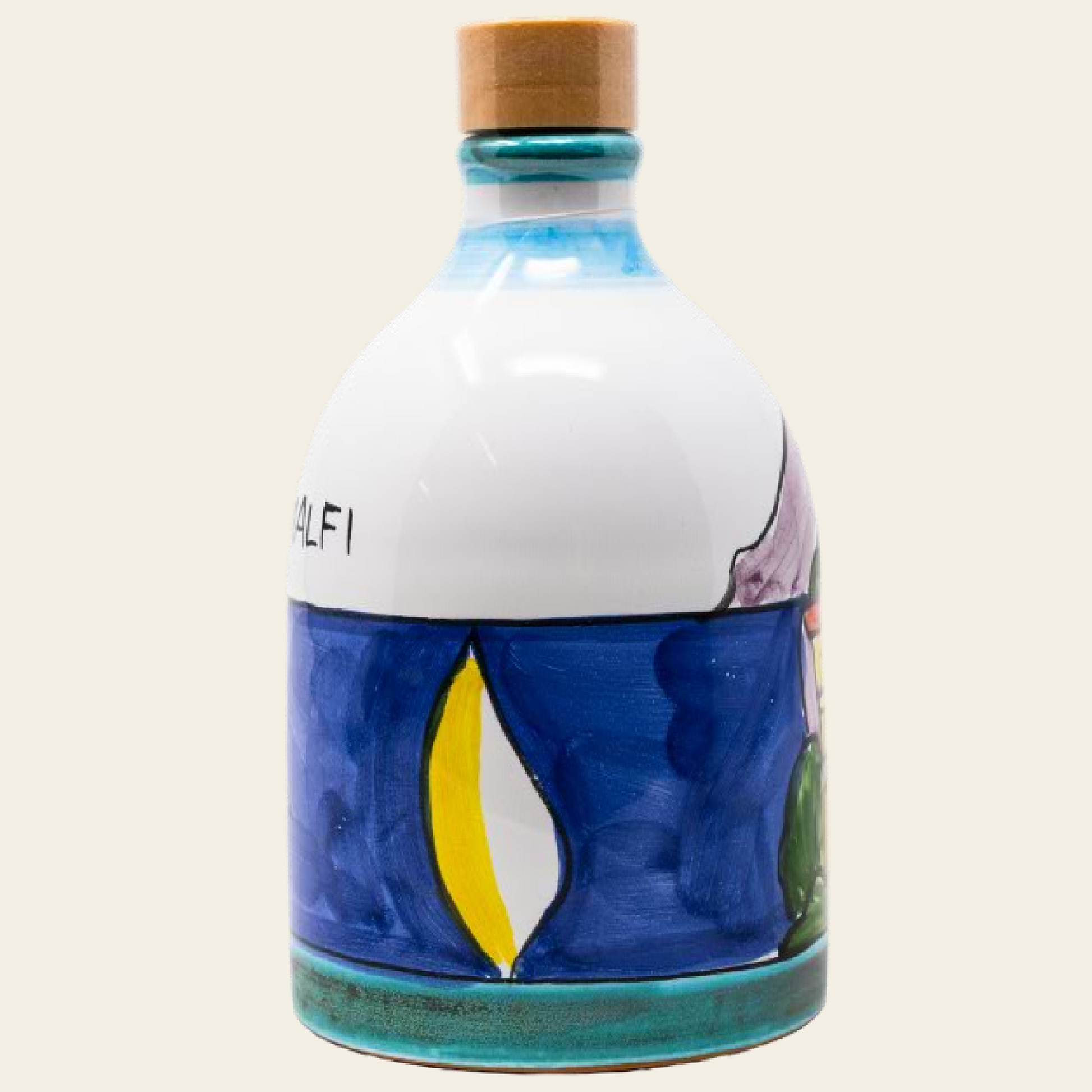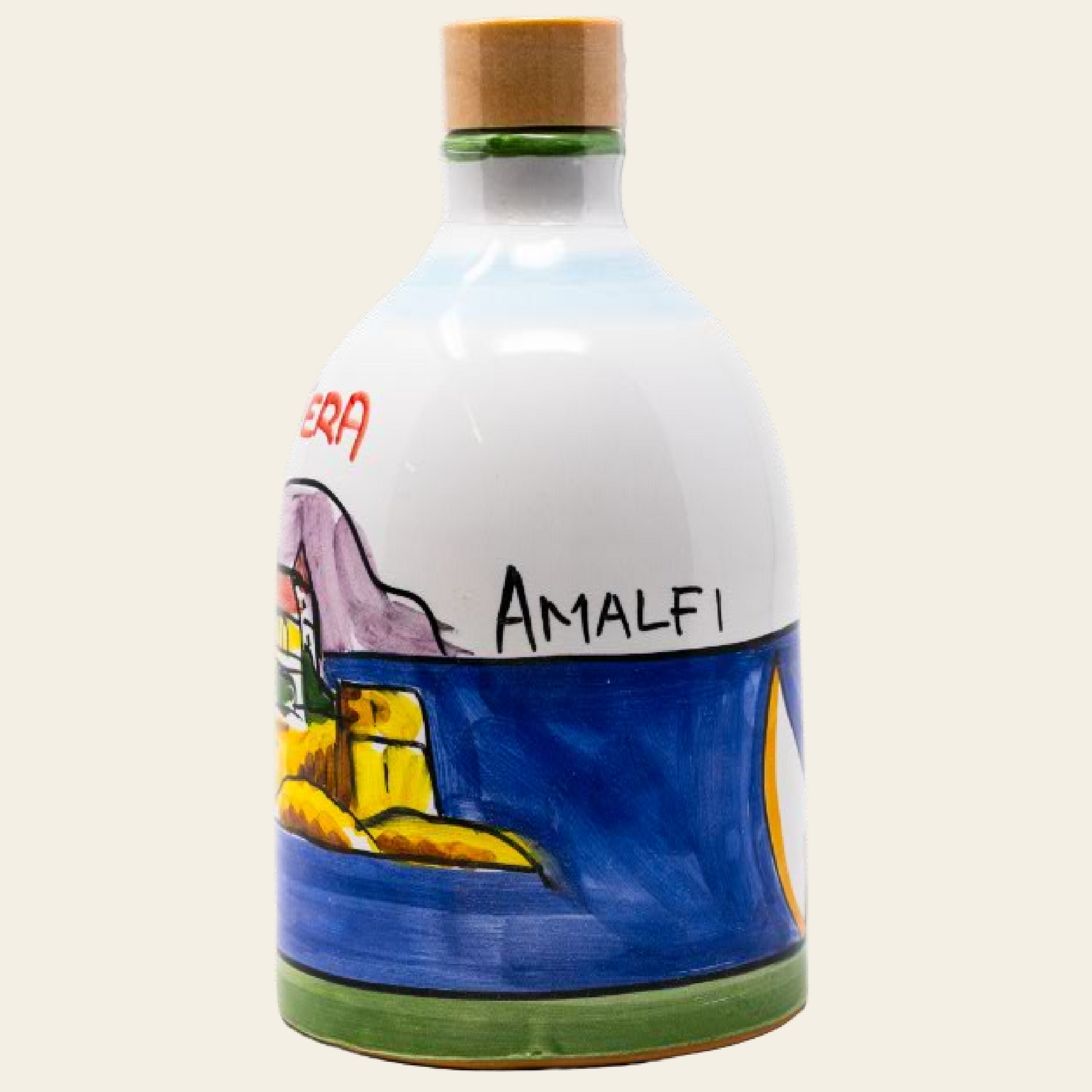 Premium Costiera Extra Virgin Olive Oil made purely from a single variety of olive called "Peranzana" (Monocultivar). These olives have been squeezed in our Oil Mill in Montesarchio (BN, Campania Region), Italy. 100% Product of Italy. First Cold Pressed. Gluten Free Food. This ceramic bottle has been hand made by our crafters on the Amalfi Coast of Italy. All of our EVOO is Gluten Free.