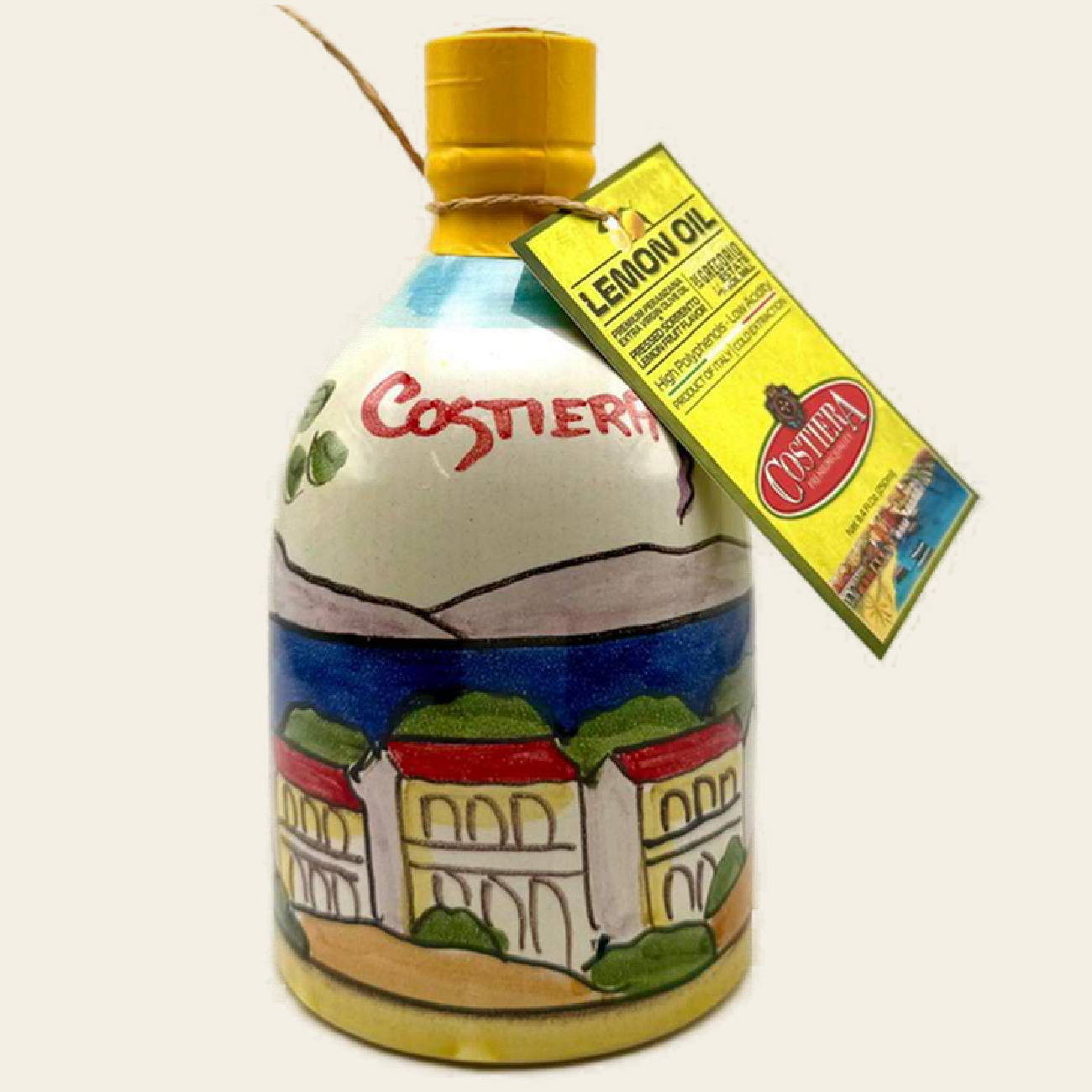 Lemon Oil. Premium Mono Cultivar EVOO with All Natural Lemon Flavors in 8.4fl.oz (250ml) Hand Crafted Ceramic Bottle. 100% Product of Italy.